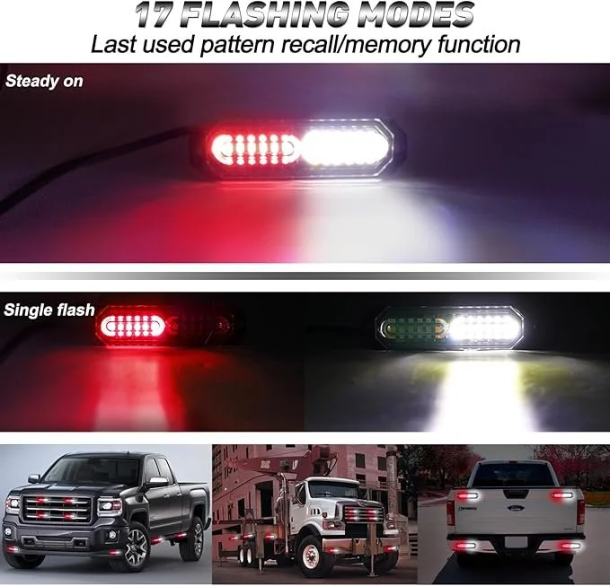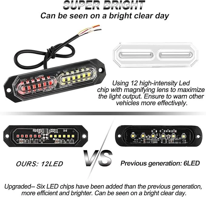 Red/White Firefighter Emergency Dash Strobe Lights for Vehicles 12V 16 LEDs